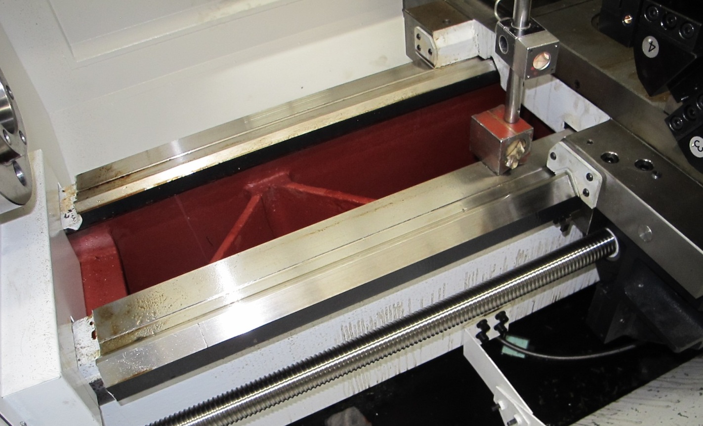 Литая станина усилена ребрами жесткости. V-образные закаленные и отшлифованные направляющие станины покрыты специальным покрытием Turcite-B для перемещения с минимальным износом и трением.