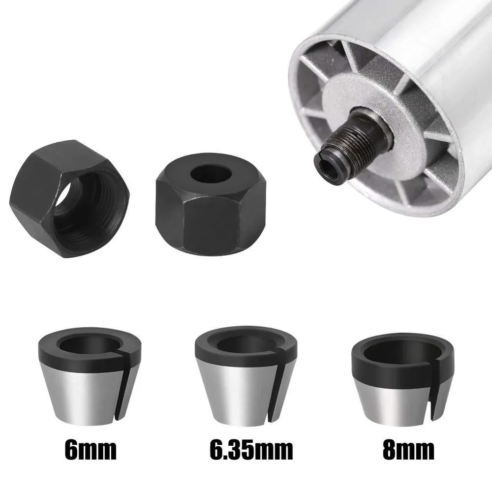 Цанговый патрон для кромочных фрезеров с диаметром хвостовика 6,35 мм. Данный цанговый патрон позволяет расширить спектр фрез, применяемых с ручным фрезером.