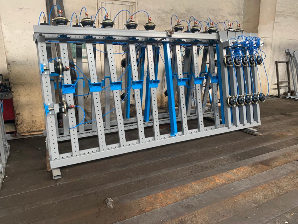 10 пневматических вертикальных струбцин, для удерживания заготовок в сжатом состоянии во время склеивания;